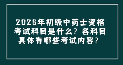 参加2026年初级中药士考试的考生从现在起就要开始备考了,在备考的时候也一定想要了解2026年初级中药士资格考试科目是什么?各科目具体有哪些考试内容?
